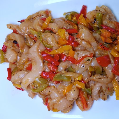 Pollo 100% natural , servido en tiras y sazonado con especias sabor KEBAB para aportar todo el sabor sin perjudicar a la salud. Acompañado con tiras de pimiento verde, rojo y amarillo , para que solo tengas que saltear y servir.